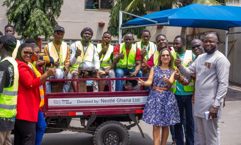 Nestlé Ghana Limited has donated 10 tricycles and other important supplies to the Kpone Landfill Waste Pickers Association to support their crucial role in the collection of plastic waste for recycling