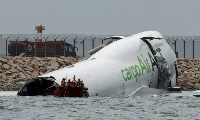 Two dead after cargo plane skids off Hong Kong runway into sea