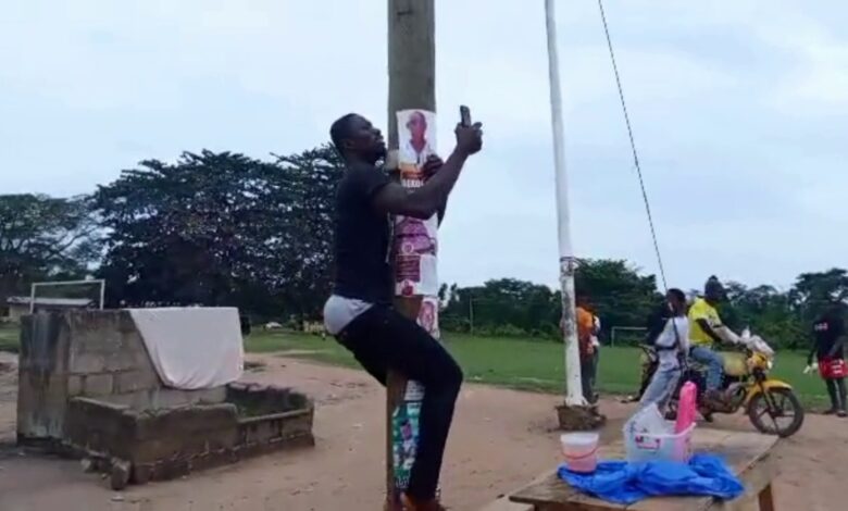 Adom TV Ashanti Regional Correspondent Joseph Obeng reports that the situation in Ataso is critical, turning the simple act of making or receiving a phone call into a literal uphill struggle.