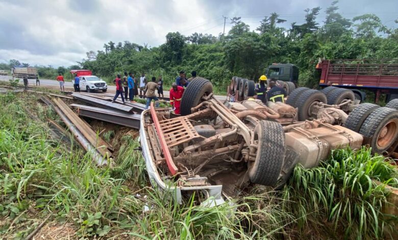 Burkinabé truck driver escapes death on Accra–Kumasi highway after swerving to avoid VIP bus