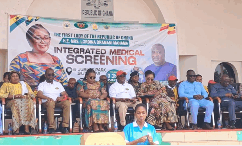 Speaking at an integrated medical outreach in Sunyani in the Bono Region, which reports the highest HIV prevalence rate in Ghana, the First Lady underscored the importance of education for pregnant women towards a safe delivery process.